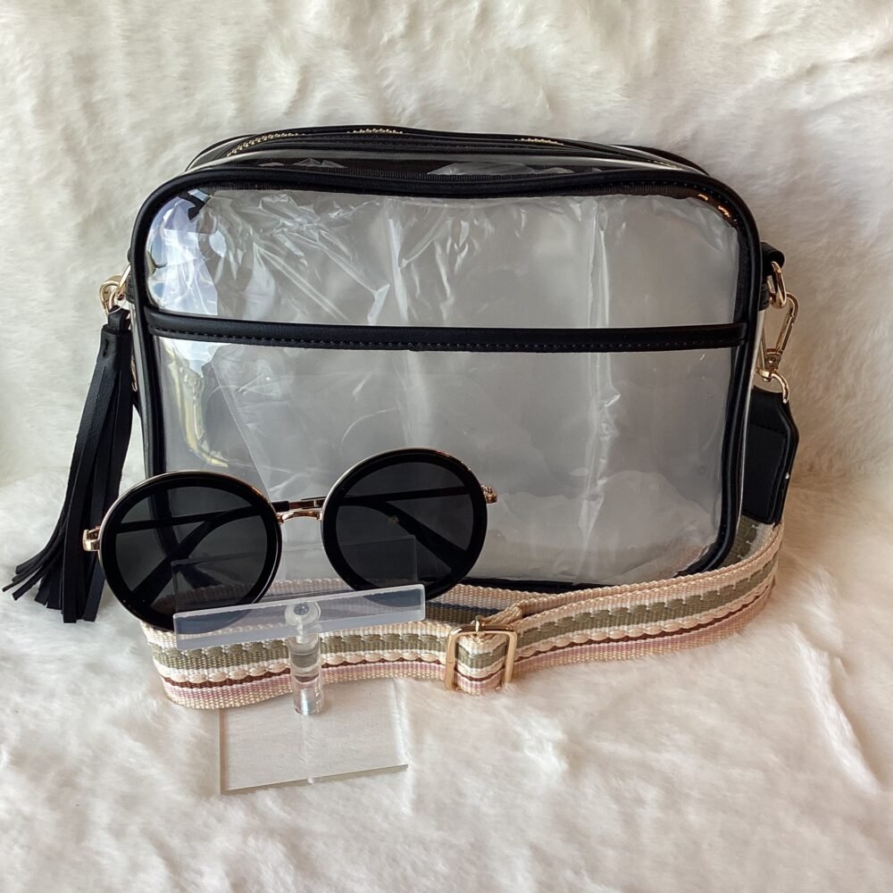 Clear and black crossbody with sunglasses