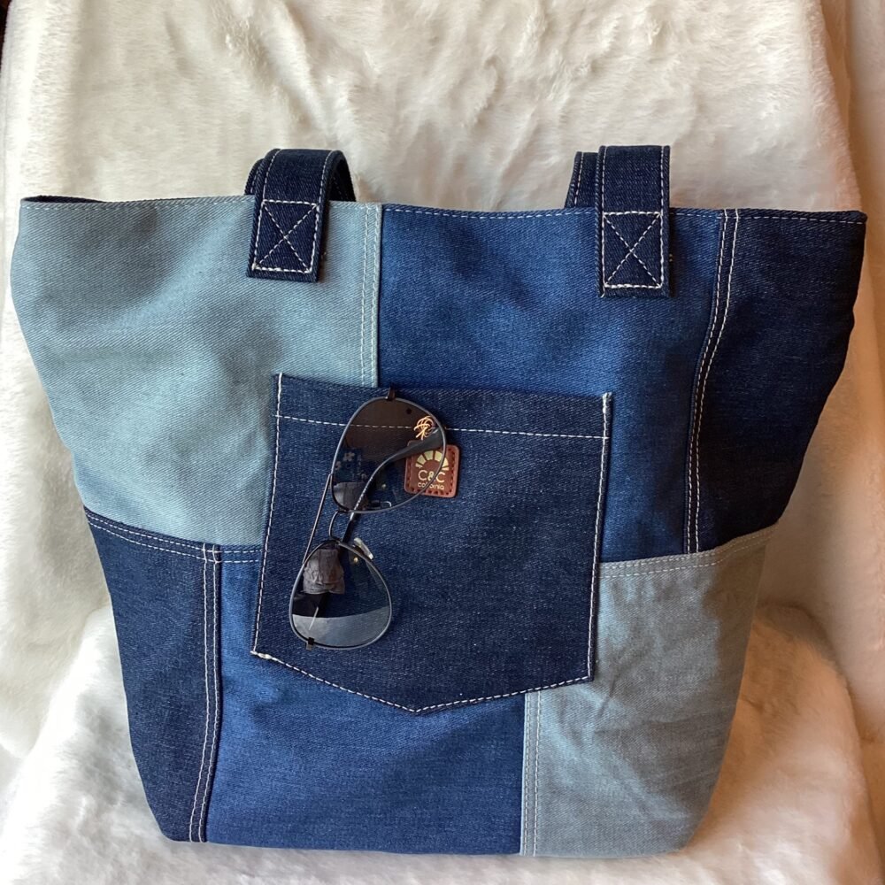 Denim pocket handbag with sunglasses