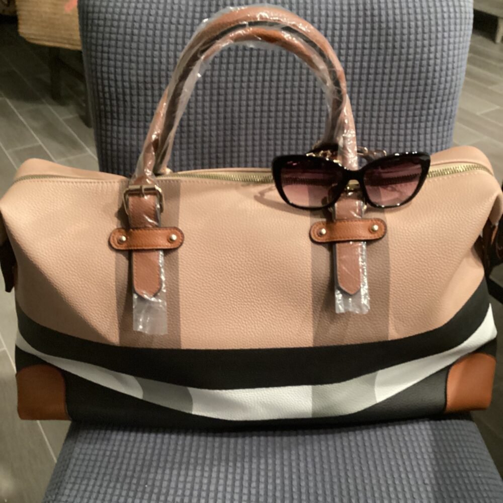 Burberry inspired tote with Nine West sunglasses.